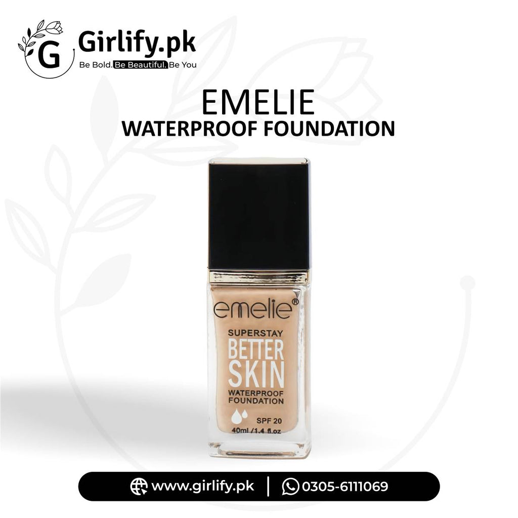 Achieve flawless, natural-looking skin all day with Emelie SuperStay Better Skin Waterproof Foundation. This lightweight yet full-coverage foundation is designed to resist sweat, water, and humidity—keeping your makeup intact from morning to night. With added SPF 20, it not only perfects your skin but also protects it from harmful UV rays.