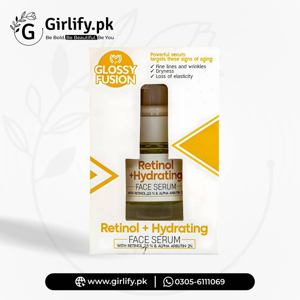 Struggling with uneven skin tone, fine lines, or dullness? Meet your new skincare essential! The Glossy Fusion Retinol + Hydrating Face Serum combines the anti-aging power of Retinol (2.5%) with the brightening and soothing benefits of Alpha Arbutin (2%) for visibly radiant, hydrated, and smoother skin.